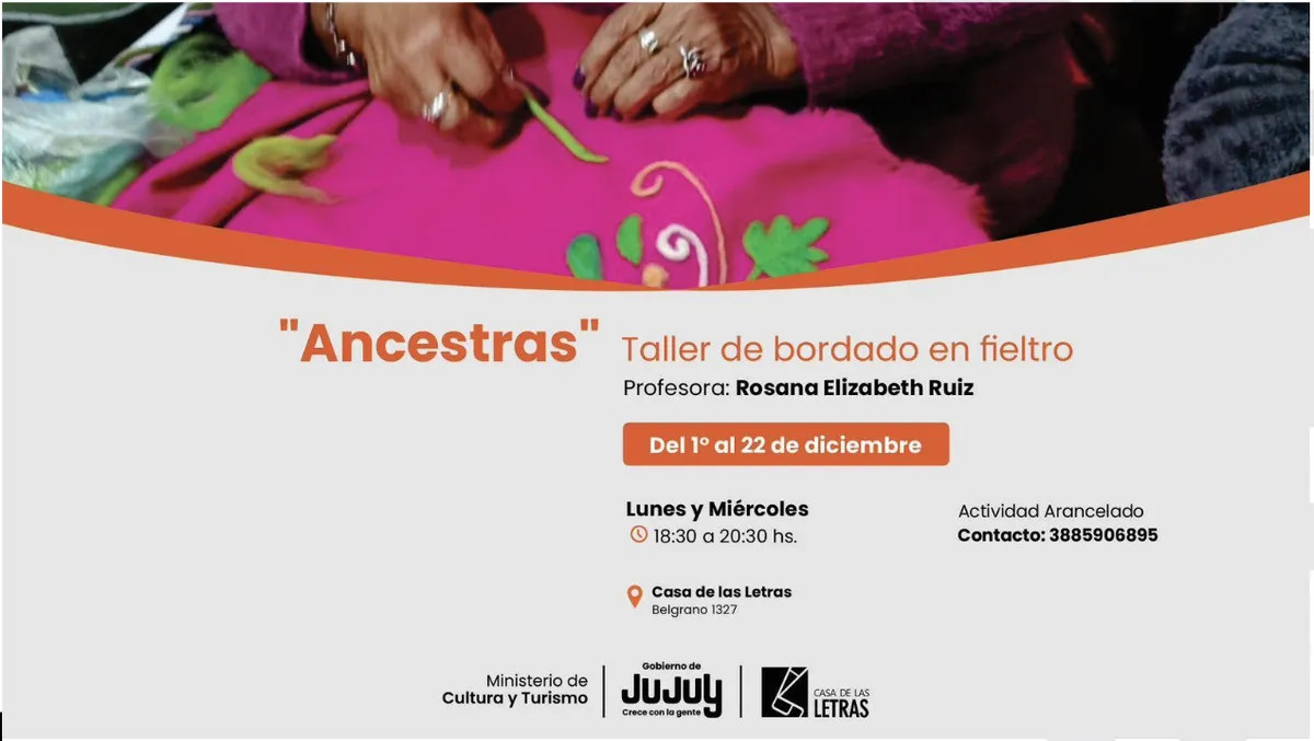 La Casa de las Letras invita a quienes deseen aprender bordado en fieltro a participar en "Ancestras", un taller artesanal que dictará la profesora Rosana Elizabeth Ruiz durante diciembre. Las clases comenzarán el 1 de diciembre y se extenderán hasta el 22, con encuentros los lunes y miércoles.