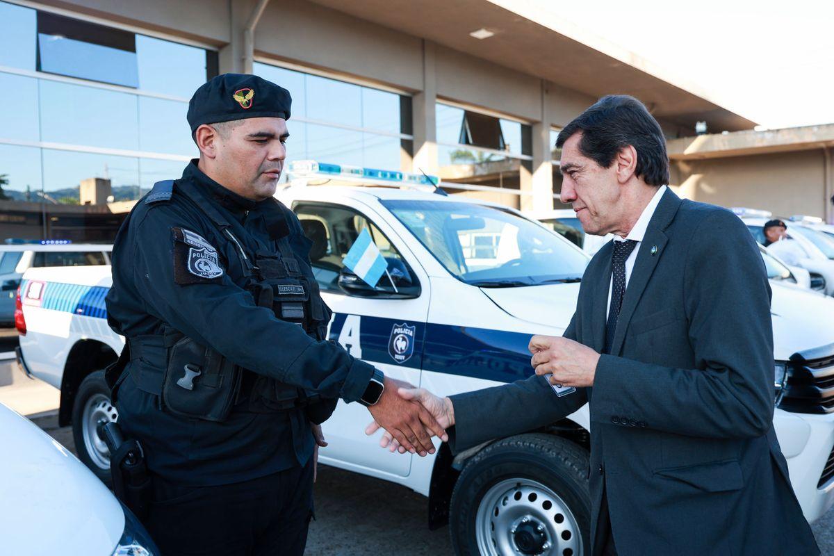 La incorporación de camionetas y motocicletas permitirá reforzar el patrullaje y la capacidad operativa de las fuerzas de seguridad en todo el territorio provincial.
